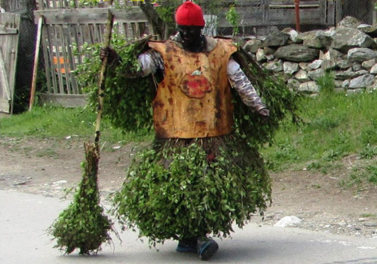 In the unique case of Băbăluzii, the procession of vegetal masks parades through the entire village, stopping at each gate. Here, Mutul Băbăluzii and Măriuța wield brooms crafted from leafy birch branches, meticulously sweeping the area. In return for their efforts, the hosts reward them with eggs. However, if the gates remain closed, the Băbăluzii troupe escalates the fences, heading straight to the chicken coops to collect eggs directly from the source.