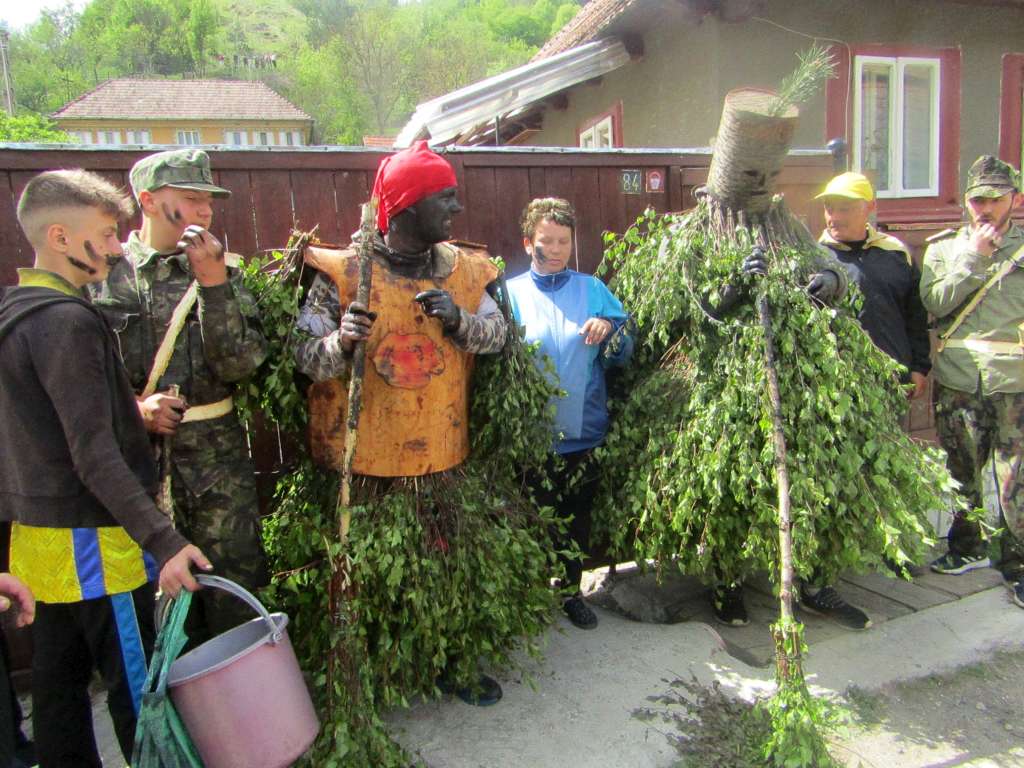 On the second day of preparations, around noon, the young people head back to the mountains to cut leafy branches from birch trees. These branches are used to make the skirts worn by the main characters, namely Mutul Băbăluzii and Măriuța, as well as the brooms, which are also part of the ritual props. This action begins at noon because it takes place on the first day of Easter. However, under different circumstances, the branches are cut later in the evening to prevent the leaves from wilting before the next day.