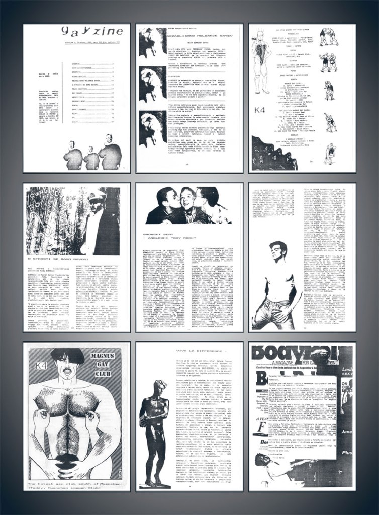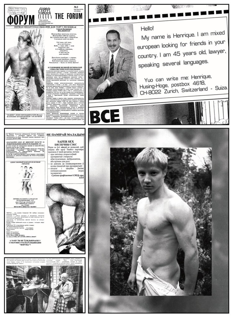 For more than ten years, Karol has travelled from Poland to Romania, Ukraine, Belarus, Croatia, Estonia, Bulgaria, Slovenia, Serbia, Czech Republic and Hungary, recording oral histories with the people he meets to collect case studies of their lives. The interviews often move from anecdotes of homophobia or love stories to cruising spots, gay clubs and the early histories of gay magazines and organisations as told by those involved. Some issues are monographic, focusing entirely on one country, including the most recent issue on Belarus. In each new place, he often finds himself the first person to address these issues from an artistic perspective, something which has provided privileged access but also a sense of responsibility towards the stories he hears. Each issue includes a long introduction in which Karol records what he has seen, how long he has spent there, and who he has met as a form of reportage. At the same time, he collects as much material as he can, re-photographing and digitising thousands of old photos, magazines and written ephemera to reprint across the pages of the magazine. Unsurprisingly, the material he has gathered often goes far beyond what he can use; thus, in 2015, he founded the Queer Archives Institute.